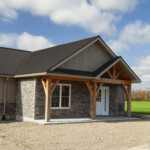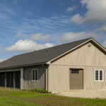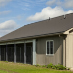 This commercial dog kennel has a neat exterior appearance that blends in well with the other outbuildings at this property.